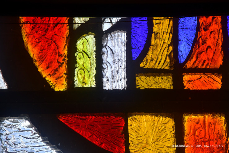"Витраж работает как на интерьер (когда светло снаружи), так и на экстерьер (в вечернее и ночное время, когда внутри горит свет, а снаружи темно). Создание таких витражей было достаточно трудоемким. Художник рисовал эскиз, расчерчивал детали, а после каждый фрагмент отливался вручную на заводе. У этих фрагментов разные шаблоны и текстура, чтобы была насыщенность и свет преломлялся по-разному", - объясняет Темиртас.