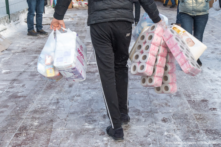 "Вчера мы привезли помощь и решили остаться здесь, немного поработали, помогли в фасовке. Сегодня я оделась теплее, чтобы работать полноценно. Казахстанцы неравнодушны, равнодушных нет", - говорит она.