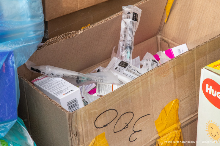 Люди все шли и шли. Причем, что интересно, никаких лишних разговоров, все по делу. Одни казахстанцы приносят, другие раскладывают все по коробкам.
