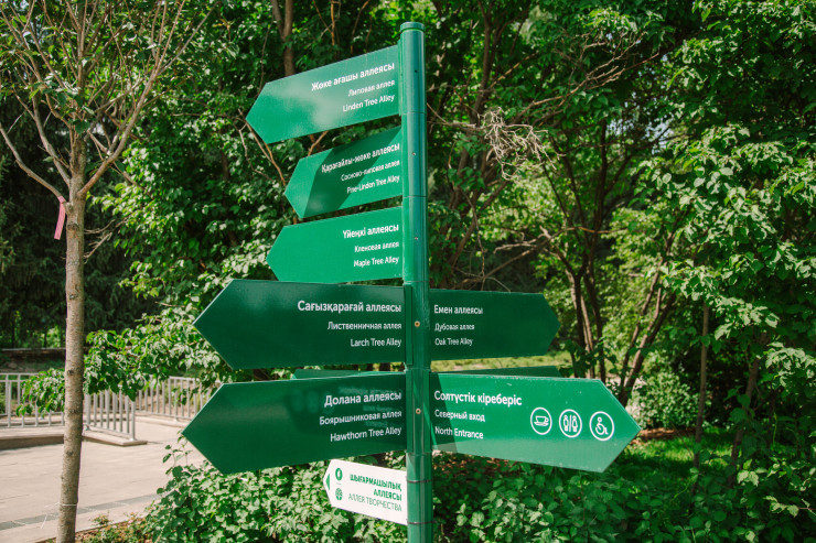 В сад можно попасть с трех входов, где установлены новые павильоны. Главный вход на улице Тимирязева, второй - со стороны проспекта Аль-Фараби, и третий - с территории выставочного центра "Атакент".