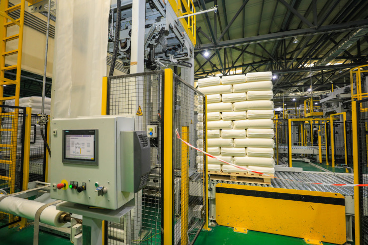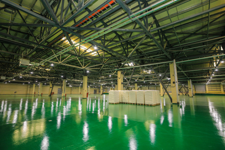 Склад готовой продукции может одновременно хранить 24 640 тонн продукции. На цифровизированном складе внедряются система управления электронным складом для повышения оборачиваемости запасов и исключения затоваривания; автоматизация погрузки и разгрузки посредством роботов для снижения затрат на персонал, исключения человеческого фактора и сокращения времени процессов.