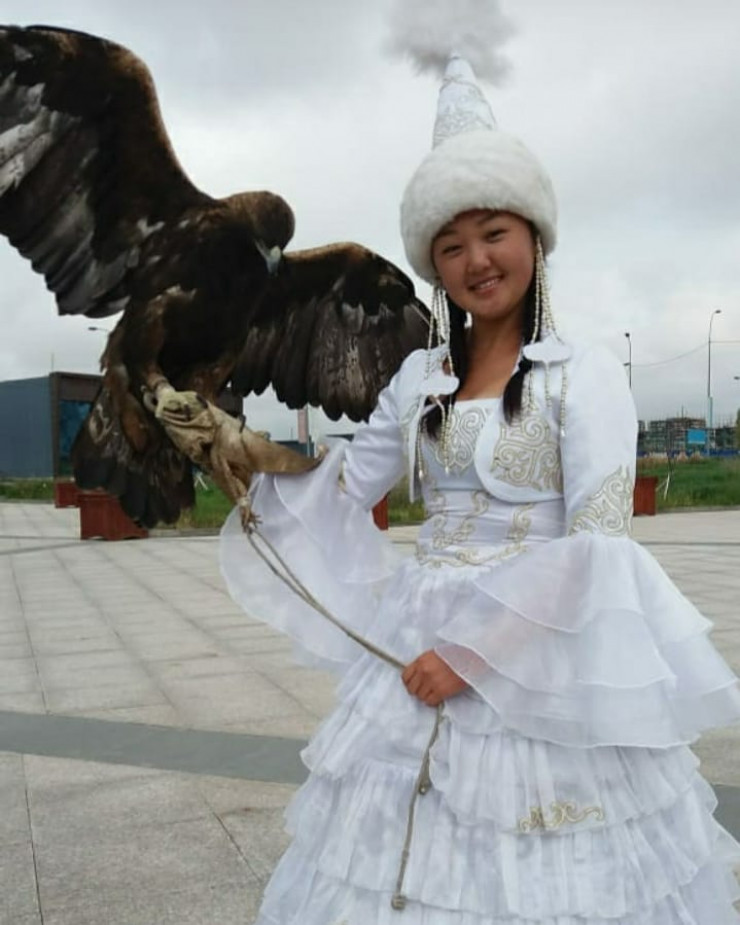 "У нас еще прадед был беркутчи, его звали Шора баба. Все, кто работает с беркутами, знают его, он понимал язык птиц, - начинает свой рассказ представитель династии Динара Баетбаевна. - Потом отец наш, дети, теперь вот внуки. Дочка Айгерим, она у нас юрист, с трех лет занимается тазы, у нее ястреб был, сокол, а сейчас беркут. Она приходит, и если надо поменять воды, то не боится, сама в клетку заходит, как мужчина. Хищник подпускает к себе только хозяев. Айгерим может взять птицу и пойти с ним на охоту.