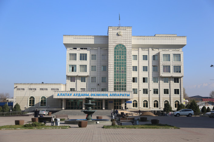 Первая остановка - микрорайон Шанырак. Посреди частного сектора расположились районные акимат, комитет по государственным доходам и суд.