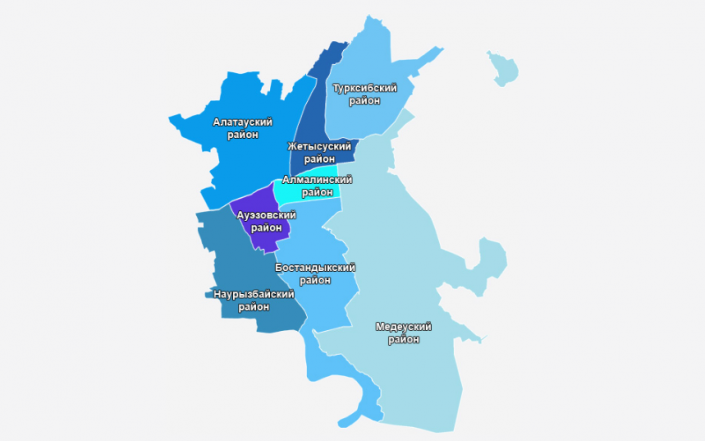 Самый большой в Алматы - Медеуский район, а самый густонаселенный - Алатауский: по данным районного акимата, здесь проживает около 253 тысяч человек.