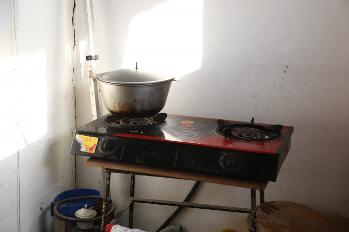 В комнате есть раковина, газовая конфорка. Все очень скромно. Туалет на улице, душа нет.