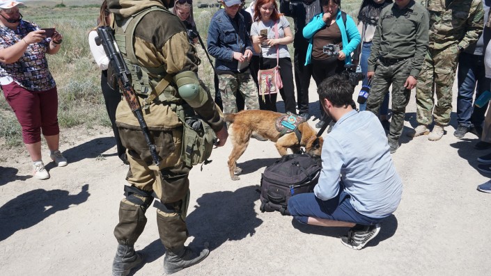 Вместе с саперами в поисковых операциях участвует бельгийская овчарка по кличке Акира. Она обучена тому, чтобы искать взрывные устройства.