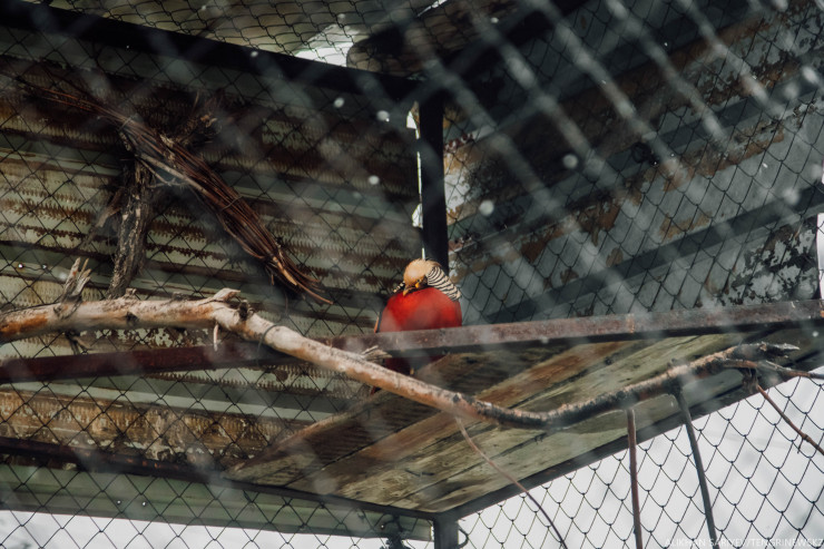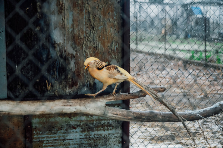 "Это павлин Петя, его привезли четыре года назад без хвоста. Компания сидела, выпивали и кому-то взбрело в голову девочек перьями наградить, и они вырвали у него хвост. Привезли в мешке сюда и сказали: "Андрей Степанович, ну выживет - выживет, а сдохнет - скормите кому-нибудь". Вот и все. Бросили. Мы его выходили, долго, конечно, с ним возились. А теперь он расцвел, хвост восстановился, будет здесь жить, так как куда ему теперь.