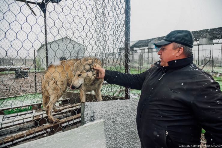 Самую старенькую нашу волчицу зовут Агуша, сейчас ей 15. Мы гуляем с ней на поводке, она ласку очень любит. Агуша из Павлодара, была подстрелена. К нам привезли ее в бессознательном состоянии, бросили и все. Приехал парень на крутой машине. А я говорю: "Раз ты такой крутой, помоги нам с бетоном, мы зальем, какие-то условия создадим животным". Он сказал: "Да, без проблем, все", - а сам уехал и пропал. И это привычное явление. Люди привозят в мешках, оставляют у двери и пропадают. А что там дальше будет, их не волнует".