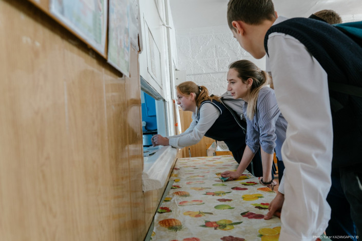 Дети идут в столовую, чтобы перекусить самсой, пирожками или пиццей.