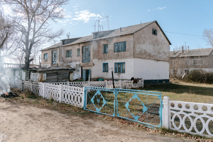 "В первый раз я в 1986 году сюда попала и была удивлена, потому что в России таких поселков вообще не было. В России тогда можно было по уши в грязи увязнуть, а здесь была цивилизация: свет, клуб, красиво построенные дома, все заасфальтировано, поселок выглядел намного лучше, чем он сейчас выглядит, совхоз вообще был очень и очень богатый", - рассказывает учитель истории Татьяна Артемьевна Петрова.