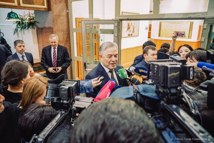 Руководитель Международного финансового центра "Астана" (неизвестно, сохранится ли это название после переименования столицы) Кайрат Келимбетов, как обычно, был в хорошем расположении духа. За несколько минут до этого фото журналисты, интересуясь тем, как он отреагировал на новости об отставке Назарбаева, его прямо спросили: "Плакали?"