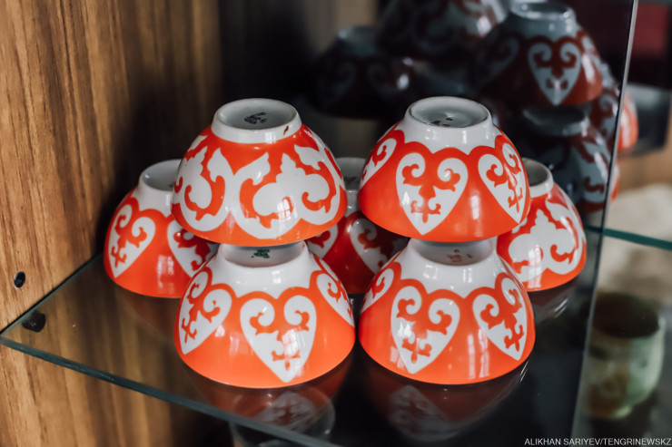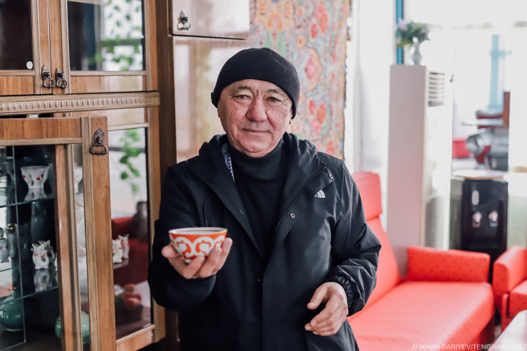 "А как же, - рассуждает он, бережно доставая из серванта фарфоровые чашки, - это ведь наша с вами история. Помните, в Капшагае был знаменитый фарфоровый завод, он тогда еще гремел на весь Советский Союз. Вот видите, тут его эмблема".