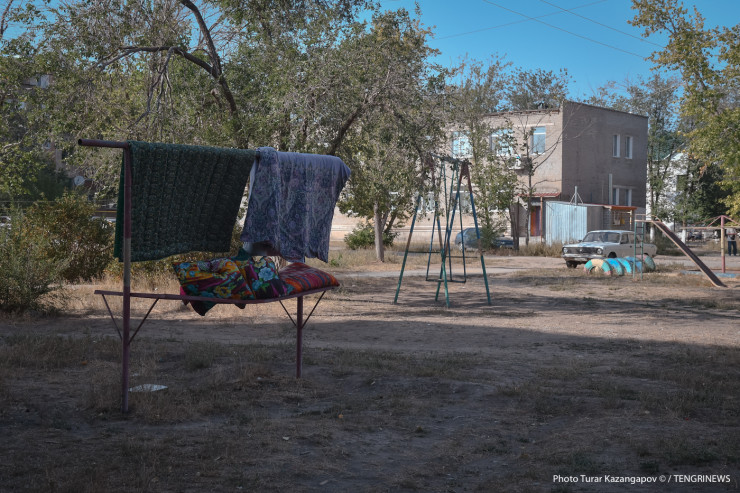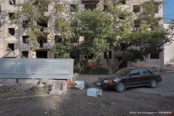Посреди обычного житикаринского двора, который можно спутать с любым двором из практически любого казахстанского города, есть нежилая пятиэтажка.