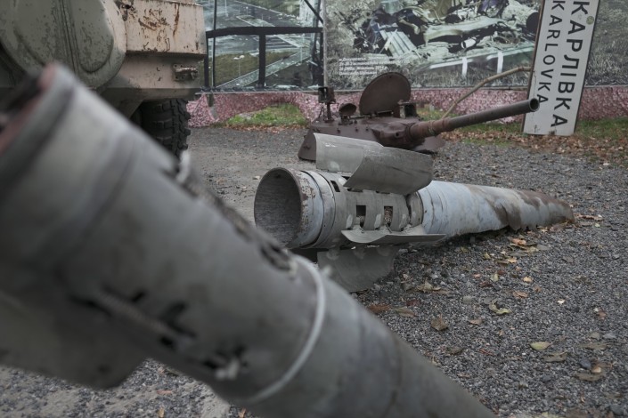 "Это музей АТО, то есть антитеррористической операции", - поясняет наш проводник и говорит, что все представленные здесь экспонаты привезены сюда из мест, где проходили боевые действия 2014 года.