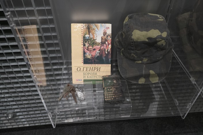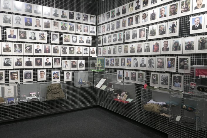 В этом музее есть еще и вторая часть, она находится внутри здания. Экскурсия здесь начинается с просмотра фильма о военных событиях 2014 года, а потом всем показывают фотографии и личные вещи людей, погибших в той войне.