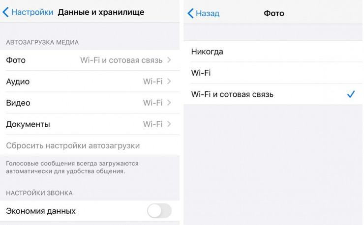 Порой от некоторых пользователей вам приходят ненужные медиафайлы, которые занимают много места в памяти смартфона. Впоследствии удаление фото и видео занимает много времени. Чтобы изначально контролировать объем поступающих файлов, вы можете запретить мессенджеру загружать что-либо без вашего разрешения. Для этого зайдите в "Настройки" - "Использование данных и хранилища" - "Автоматическая загрузка мультимедиа". Далее настройте прием данных так, как вам кажется удобным. Выберите нужный чат - нажмите на контакт или тему в верхней части экрана - "Сохранение файлов" - выберите нужный пункт.