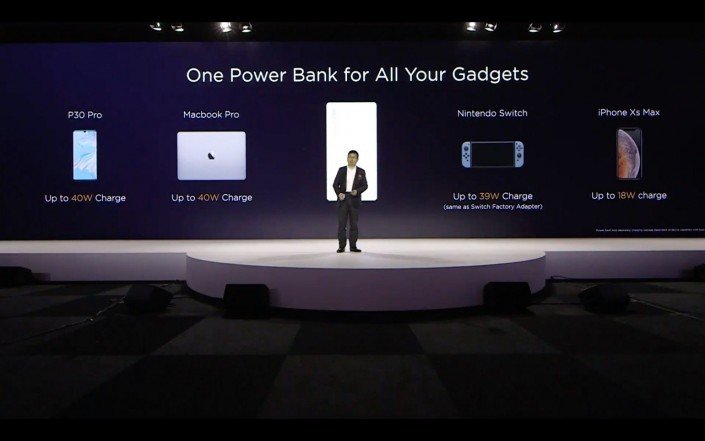 20:12 А сейчас на сцене что-то невероятное! Портативный Power Bank от Huawei, поддерживающий 40-ваттную зарядку устройств, вплоть до MacBook. Емкость 12 000 мА*ч.