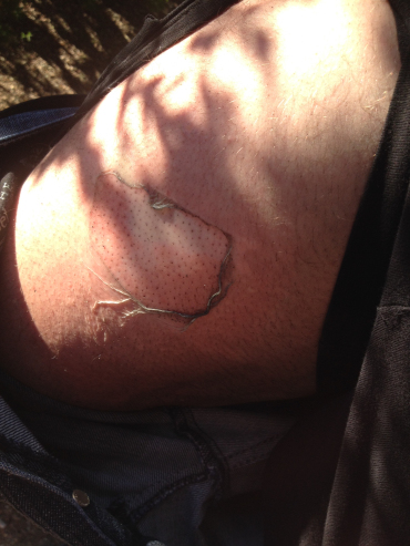В качестве доказательства Филипп сделал небольшую видеозапись, а также несколько фотоснимков, на которых он запечатлел погнутый и сгоревший iPhone 6, свои повреждения и обгоревшую одежду.