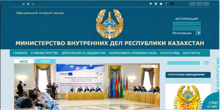 Для начала необходимо пройти регистрацию на сайте МВД РК: нажимаем справа сверху кнопку "Регистрация". Если вы уже зарегистрированы, то пройдите авторизацию.