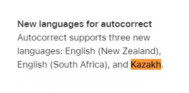 Кроме того, казахский язык будет поддерживаться и в функции автозамены.