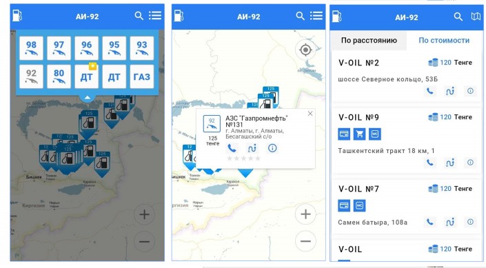 Приложение АЗС.KZ позволяет не только найти ближайшую заправку, но и сравнить цены на топливо, качество сервиса в точках обслуживания, принять участие в составлении рейтинга заправок. Если же водитель отправляется в длительную поездку, то он сможет сформировать оптимальный список заправочных станций на своем пути следования.
