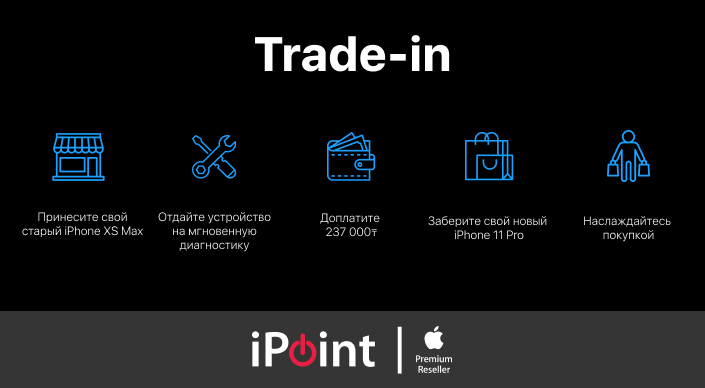На данный момент на рынке Казахстана iPoint является единственным из официальных продавцов продукции Apple, предлагающих услугу Trade-in.