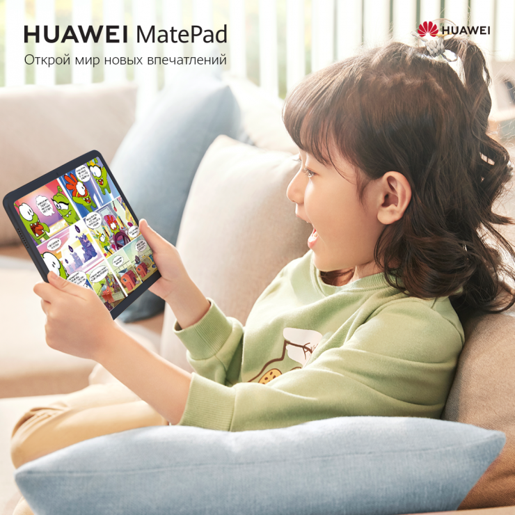 HUAWEI MatePad получил флагманский дизайн с премиальной отделкой корпуса и ярким экраном. Благодаря узким рамкам шириной 7,9 мм полезная площадь экрана достигает 84%. Центральная рамка с антеннами беспроводной связи интегрирована в единое целое с корпусом, образуя легкую и компактную конструкцию при весе в 450 граммов.