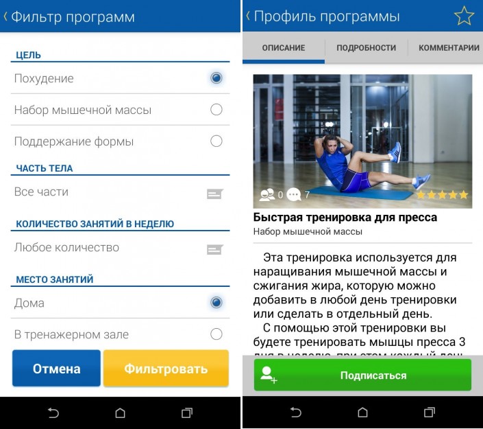 В приложении можно указать главную цель тренировок. Это может быть похудение, набор мышечной массы или поддержание нынешней формы. Пользователю нужно знать свои проблемные зоны, которые тренировать необходимо особенно усердно. После заполнения всех граф программа предложит несколько видов тренировок.