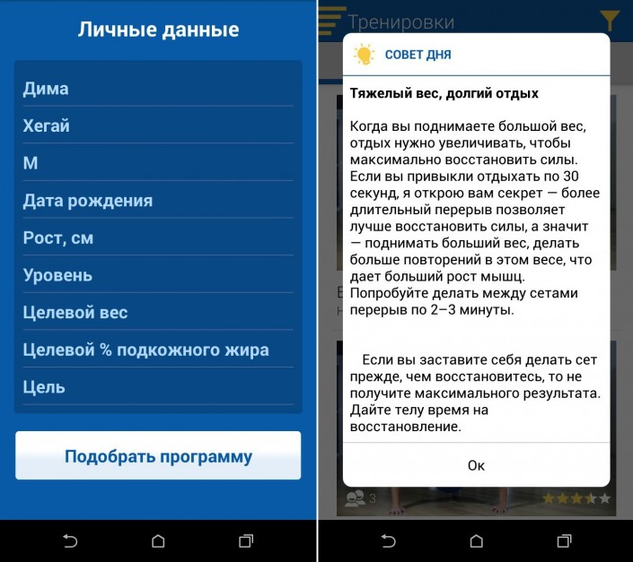 Tengrinews.kz протестировал казахстанское мобильное приложение для фитнеса Скриншот приложения "Личный тренер"