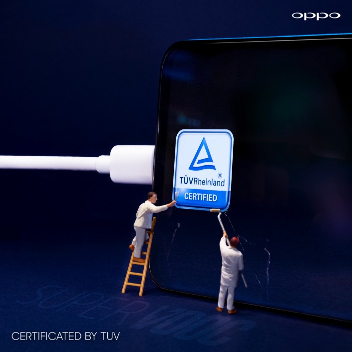 SuperVOOC Flash Charge уже прошел чрезвычайно строгие тесты безопасности и быстрой зарядке, в том числе 1000 циклов испытаний и 600 независимых тестов быстрой зарядки и быстрого разряда батареи от лаборатории TUV Rheinland.