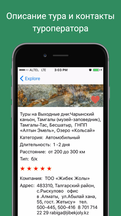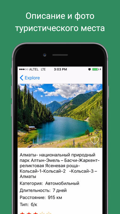 Всего программа имеет базу, в которой более 100 туристических маршрутов. "Almaty Tour имеет обширную коллекцию туров с деталями, созданными совместно с туроператорами, путешественниками и альпинистами. Будь вы дома или в дороге, найдите для себя пешие, велосипедные, беговые или автомобильные походы по длине дистанции, уровню сложности и рейтингу. Если вы одни, то при помощи нашего приложения вы сможете найти для себя компанию единомышленников и лучших гидов южной столицы Казахстана", - рассказал собеседник.
