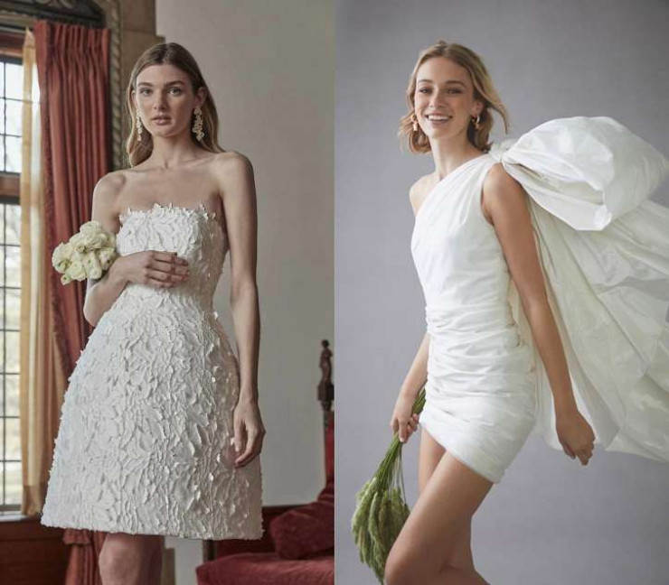 Дизайнеры решили, что после длительного карантина невесты уж точно захотят выглядеть если не экстравагантно (к примеру, в платье с перьями), то максимально эротично. И вариантов таких платьев в коллекциях было немало. Если коварная "русалка" и платье с глубоким вырезом – это не "ваш фасон", то есть возможность продемонстрировать красоту ног, причем в полном объеме.