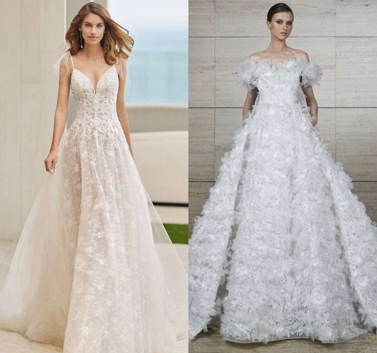 Фаворитами весны 2023 стали красивые свадебные платья с цветочными мотивами. На неделе свадебной моды было представлено множество моделей с вышивкой, объемными цветочными аппликациями и принтами. Такие новинки свадебных платьев продемонстрировали Pronovias, Gracy Accad и Naeem Khan.