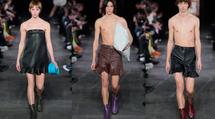 Разговор о гендерном сдвиге в моде последнего десятилетия стоило бы начать с коллекции Джонатана Андерсона десятилетней давности: мужские мини-платья и брюки с воланами без преувеличения вошли в историю современной моды. Эти вещи Джонатан и вернул в новой коллекции.
