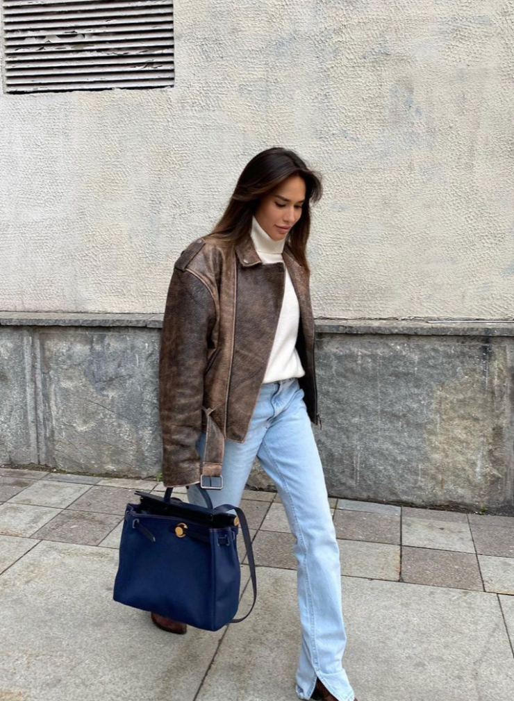 Кожаная куртка никогда не выйдет из моды, это универсальная вещь, но ее дизайн имеет свойство меняться. Немного инфантильные варианты с мультяшками, надписями, цветами отложите до лучших времен, а пока выберите однотонные модели.