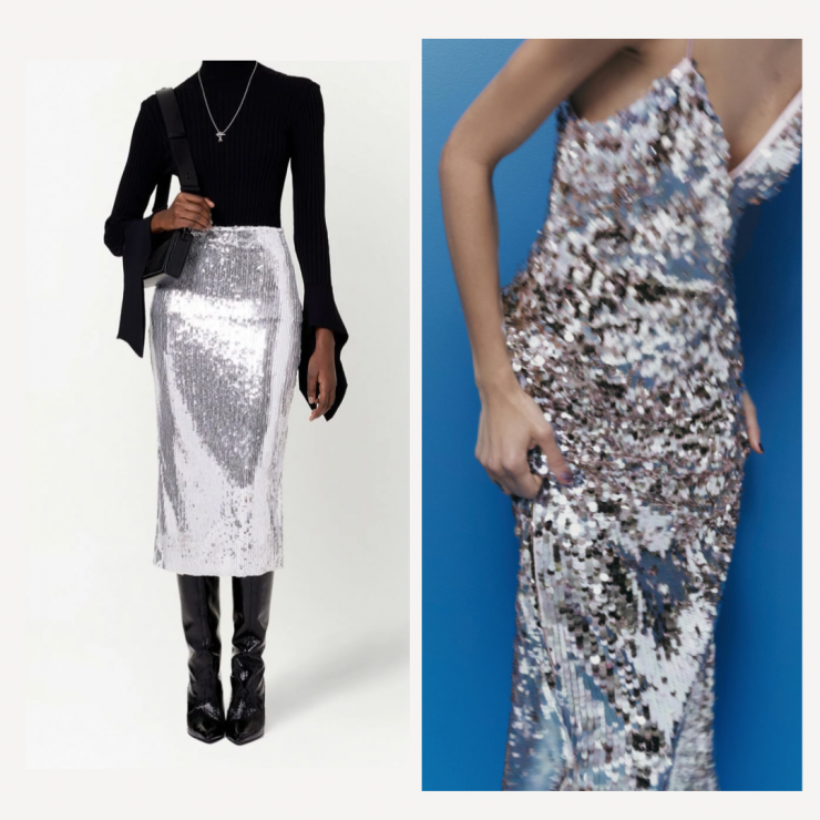 Нетипичный цвет для праздничных нарядов мы предлагаем трактовать как металлик. Холодный блеск как нельзя кстати подходит для новогодней ночи, создавая нужное настроение. Юбки с пайетками, рубашки со стразами или джинсы с серым глянцем позволят отлично обыграть образ и сделать его по-настоящему праздничным.