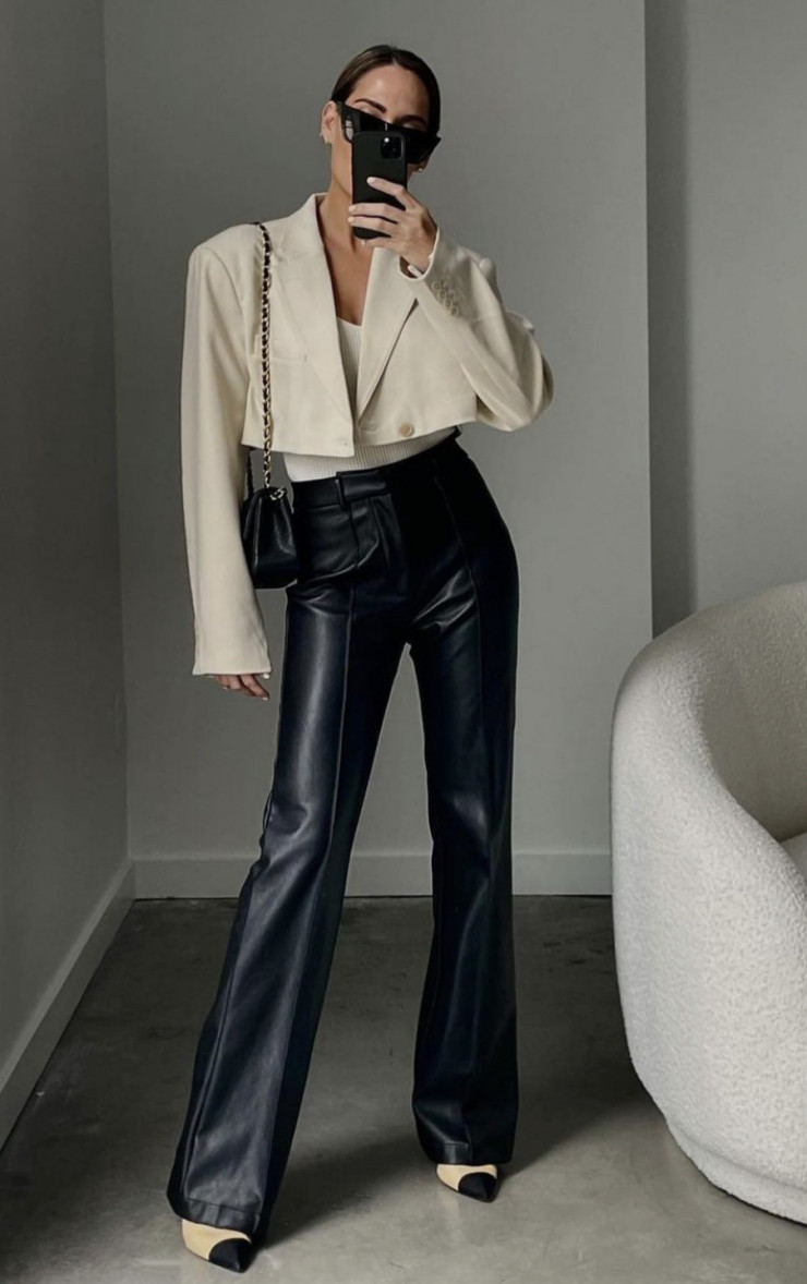 Можно носить укороченный верх или частично заправлять край одежды в брюки и юбки с высокой посадкой. Таким образом низ будет казаться длиннее, а верх меньше. Тем более что укороченные пиджаки или куртки - тренд сезона, поэтому можно сорвать двойной куш складным и модным образом, говорит стилист.