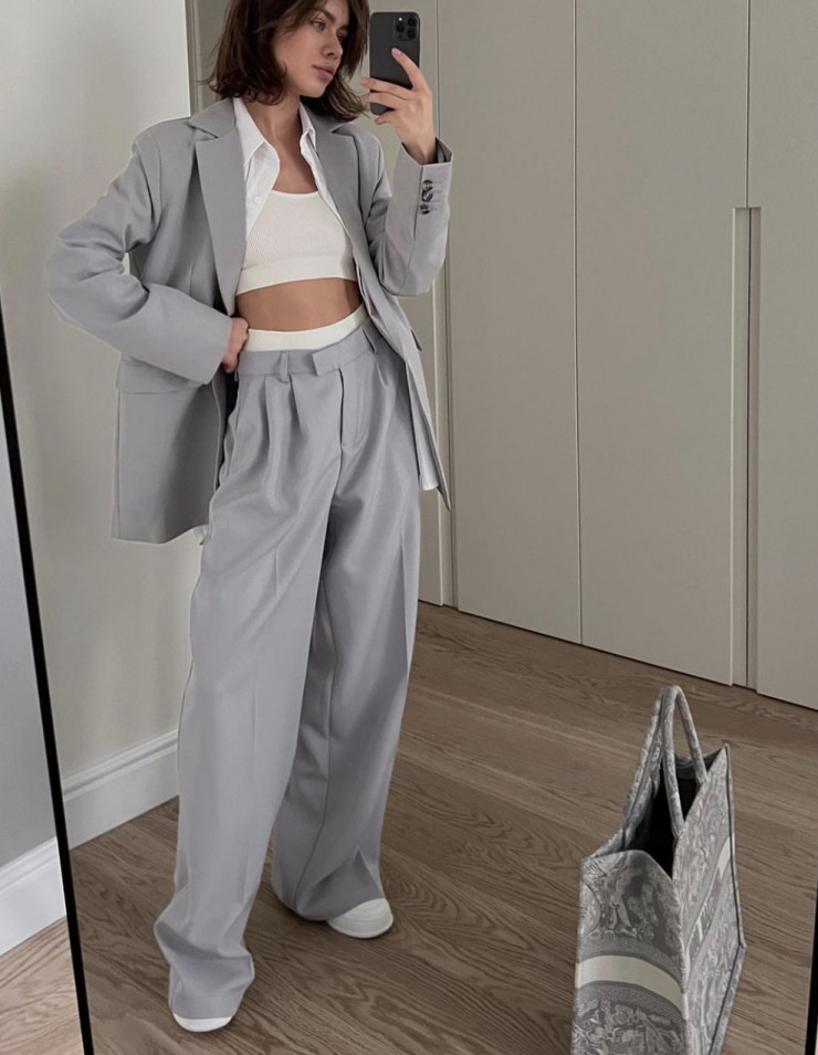 Широкие брюки актуальны уже не первый сезон, и сдавать свои позиции они не собираются. Важно учитывать два момента: брюки лучше носить с каблуками, но если в приоритете кроссовки или ботинки, то лучше сделать выбор в пользу обуви на платформе. Брюки должны целиком закрывать каблук или платформу.