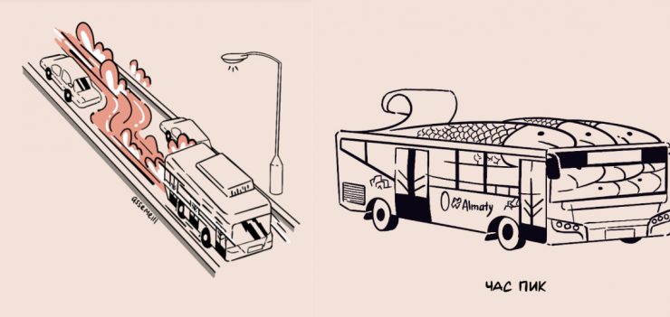 В сети популярность набирают картинки Асем Жилкибаевой (@assemeill). Девушка вот уже 10 лет живет в мегаполисе, и теперь она понимает как коренных алматинцев, так и приезжих. Ведь во многом проблемы у них общие.