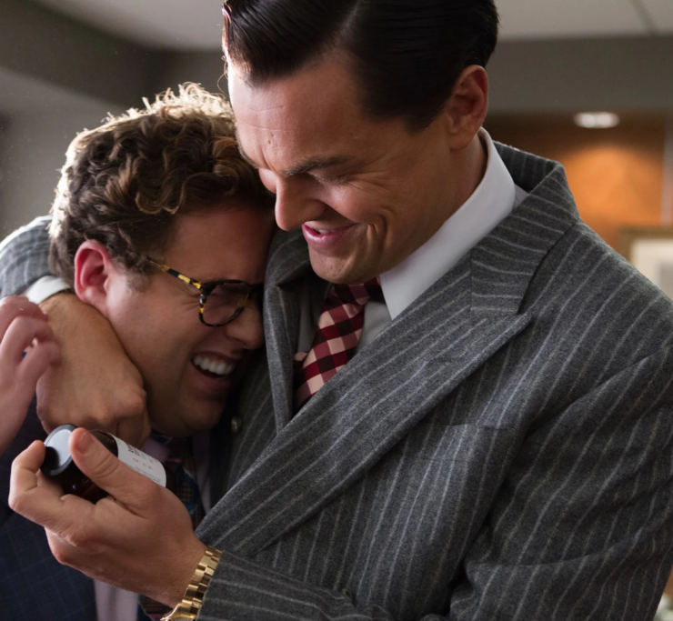 На протяжении трех экранных часов гардероб Джордана Белфорта сознательно эволюционирует вместе с героем: сначала он офисный клерк из Куинса, а к концу - самый богатый человек Америки.