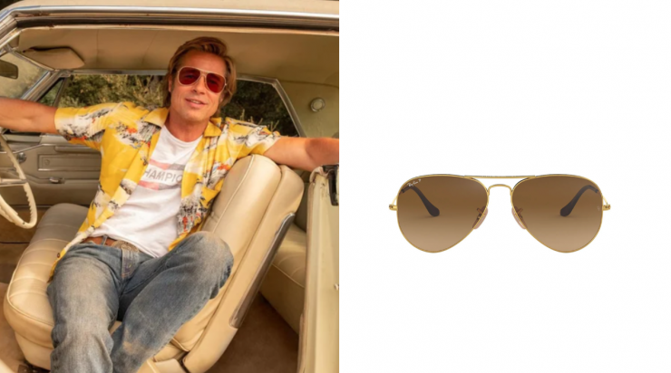 Пожалуй, каждого героя "Однажды в Голливуде" можно назвать стильным. Однако, когда дело доходит до аксессуаров, хочется обратить внимание на каскадера Клиффа Бутта (Бреда Питта). В фильме он появляется в винтажной модели авиаторов с золотой оправой. Вневременная модель органична как в повседневных, так и в деловых образах. Питт - не первый и не последний, кто появился на экране в этих очках, но запоминающе смотрятся они только на нем.