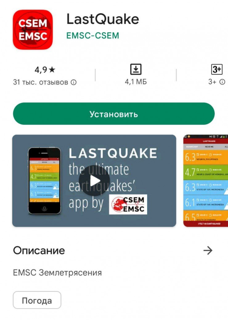 В описании приложения отмечается, что с помощью него можно получить "оповещения о землетрясениях в реальном времени на вашем смартфоне". Также есть реклама и платный контент. У приложения более пяти миллионов скачиваний.