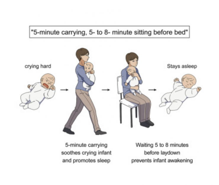 Было выявлено, что после того, как младенец засыпал на руках, не стоит его укладывать сразу в кроватку: 9 из 22 спящих младенцев пробуждались через 20 секунд после укладывания. Ученые связали это с изменением положения головы и активацией сердечно-сосудистой системы.