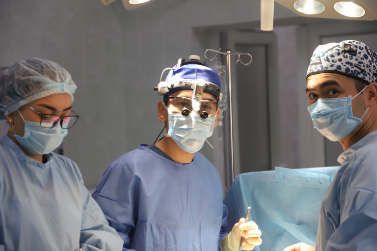 Бауыржан Ракишев с коллегами в операционной. Фото Tengrinews.kz