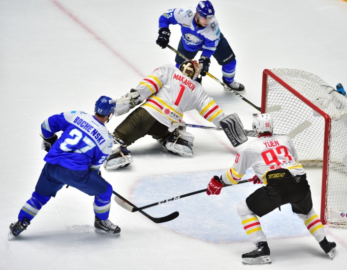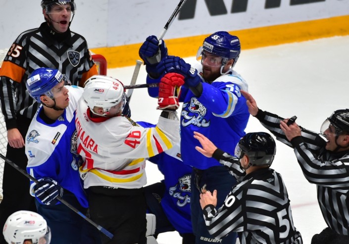 Игра в Астане завершилась со счетом 4:1 в пользу хозяев. Уже в самом начале матча "Барыс" обеспечил себе преимущество. На третьей минуте счет открыл нападающий Никита Иванов, а на пятой в большинстве отличился канадский защитник Кэм Баркер.