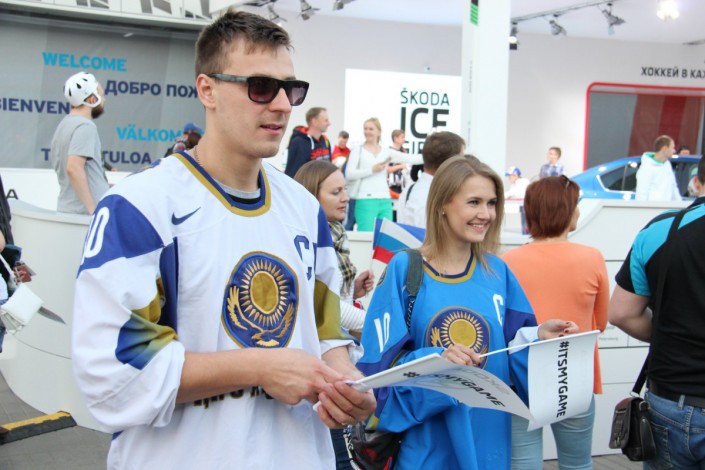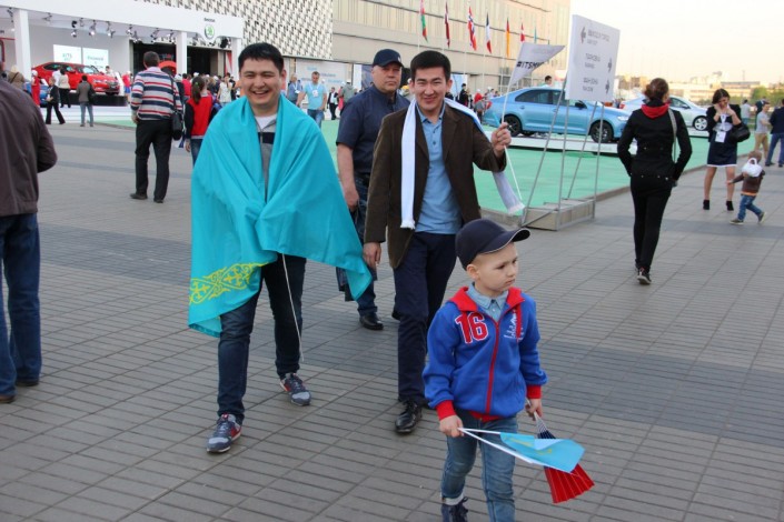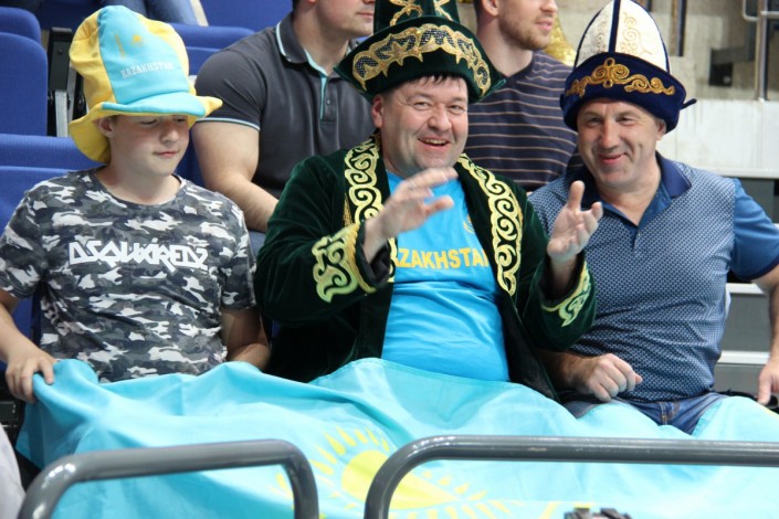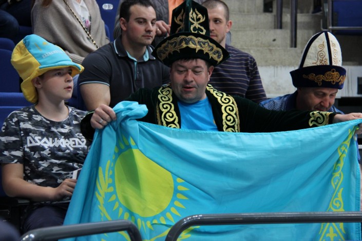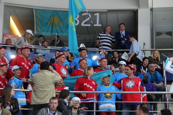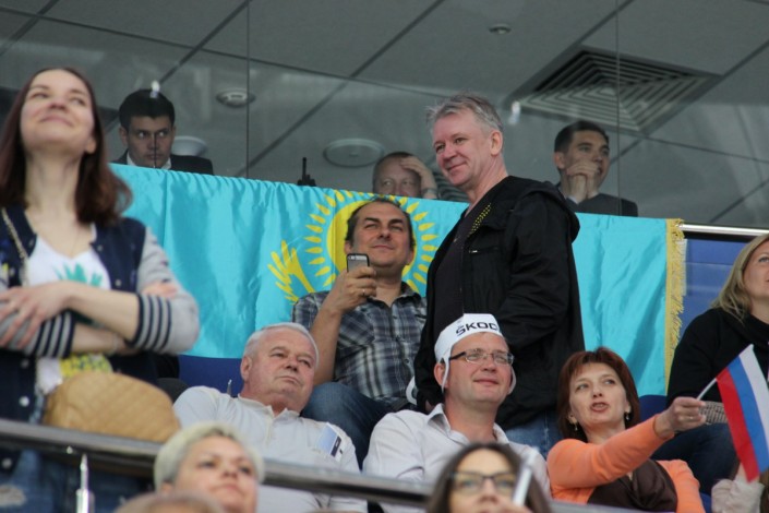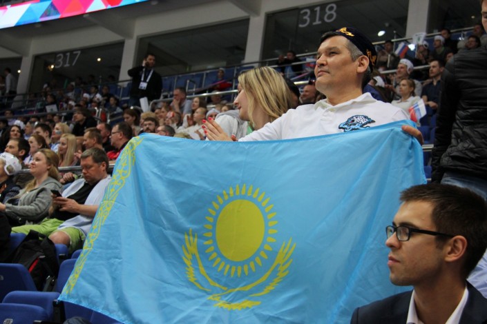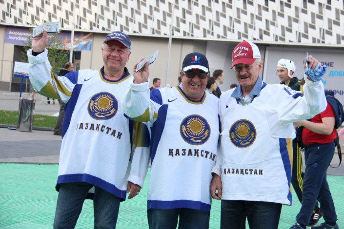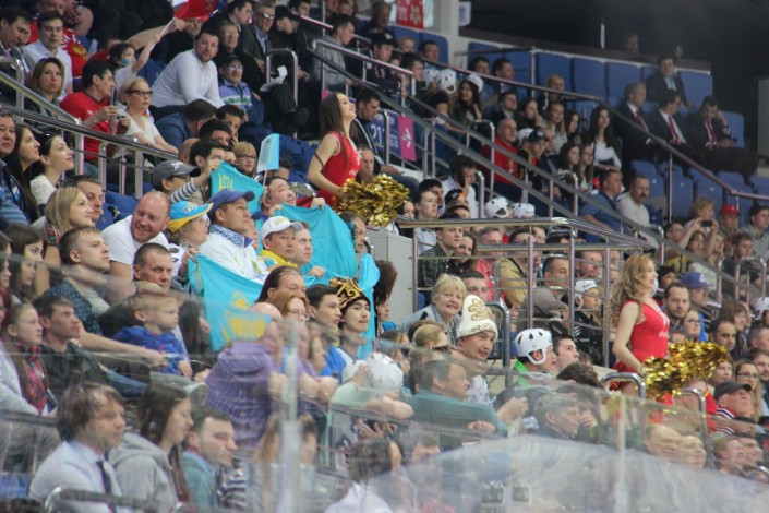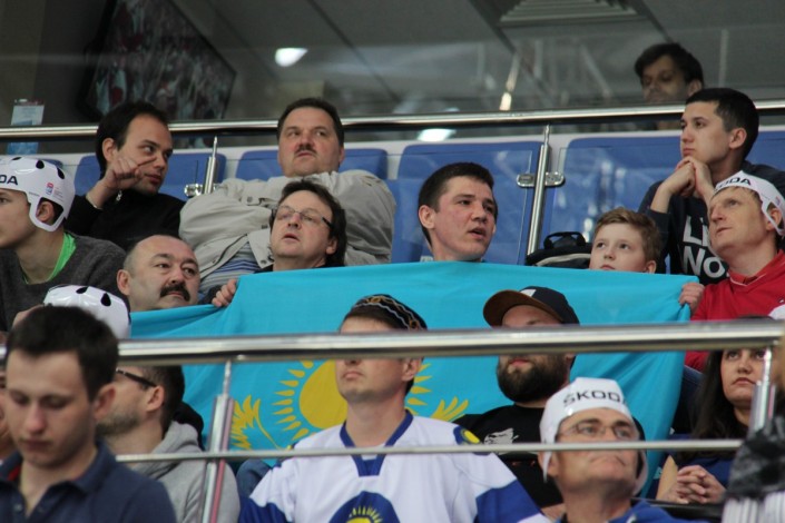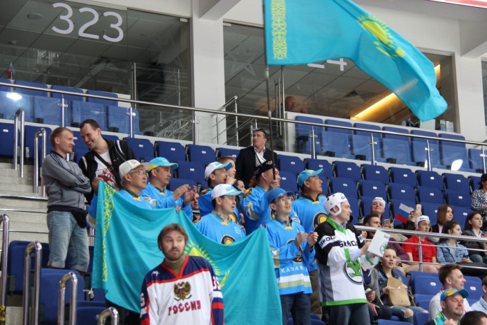 А вот как поддерживали национальную команду болельщики на трибунах арены "ВТБ Ледовая Арена". Фото корреспондента спортивного портала Vesti.kz.