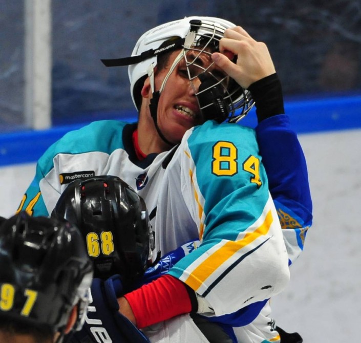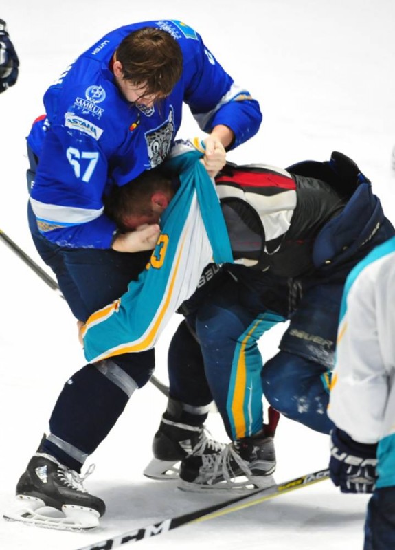 Перчатки сбросили игроки "Снежных Барсов" и "Алтая", устроив настоящее ледовое побоище.