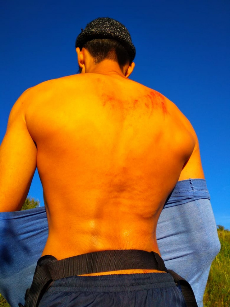 Я понимаю, что хруст был. Надо куда-то бежать. Я по диагонали от камня начинаю бежать. На скалах была тина, жижа скользкая. Я поскальзываюсь и, получается, падаю под камень. В этом месте была промоина, я попал в эту промоину, часть камня откололась, попала мне на спину. Из-за того, что там была вода, весь вес камня я не ощутил на себе, и, получается, поток воды вытолкнул меня. Я выбрался без сильных повреждений, только спину себе поцарапал и сломал зубы",  - рассказал Роман Бачевский.