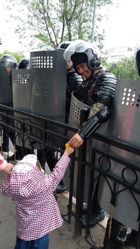 Маусымда Нұр-Сұлтандағы митинг кезінде түсірілген сурет халықтың жүрегін елжіретті. Санкцияланбаған митинг кезінде Желіде кішкентай қыздың әскери қызметкерге гүл беріп жатқан сәті тараған болатын.