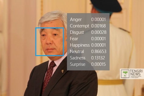 На этой фотографии министр обороны Имангали Тасмагамбетов нейтрален на 75 процентов и грустен на 21 процент.